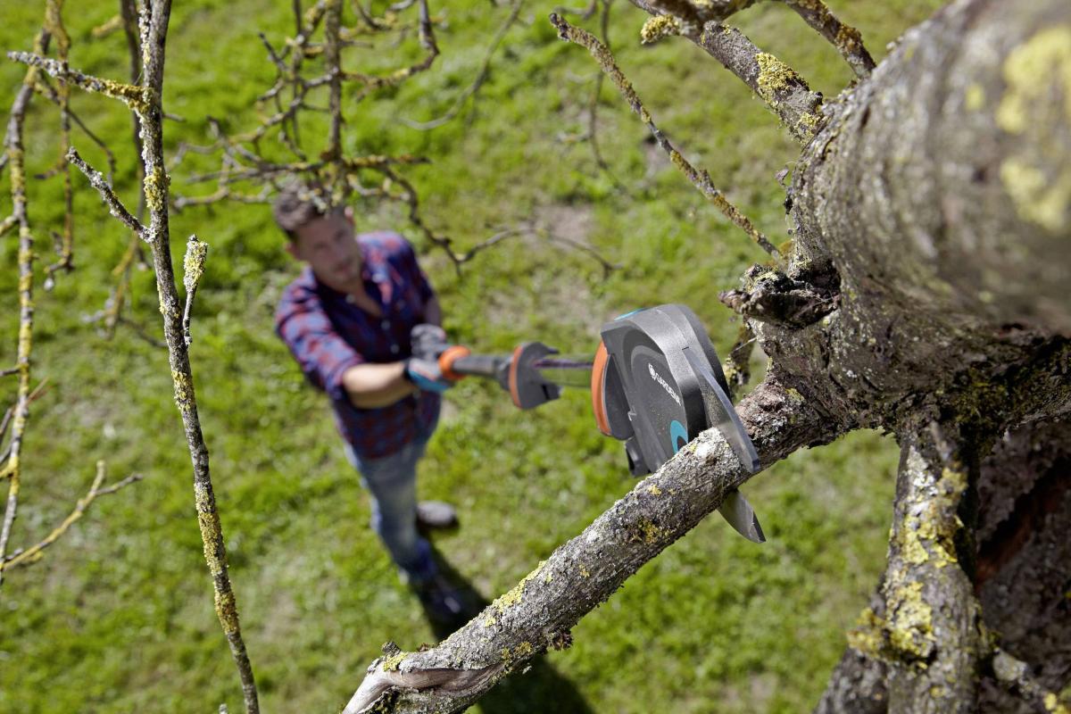 A GARDENA teleszkópos StarCut 410 plus ágvágó a magas fák és cserjék karbantartásának szakértője. Teleszkópos alumínium fogantyúja 230-410 cm között állítható, így akár 6,5 méteres magasság is elérhető. A 12x-es erőátvitel könnyedén vágja a 32 mm átmérőjű ágakat. Az állítható horog segít a levágott ágak egyszerű eltávolításában. A belső csigás mechanizmus megakadályozza az elakadást, a tapadásgátló bevonatú precíziós kések pedig hatékony vágást és könnyű tisztítást biztosítanak. Csúszásgátló húzófoggantyú és T-fogantyú a biztonságos, kényelmes használatért.