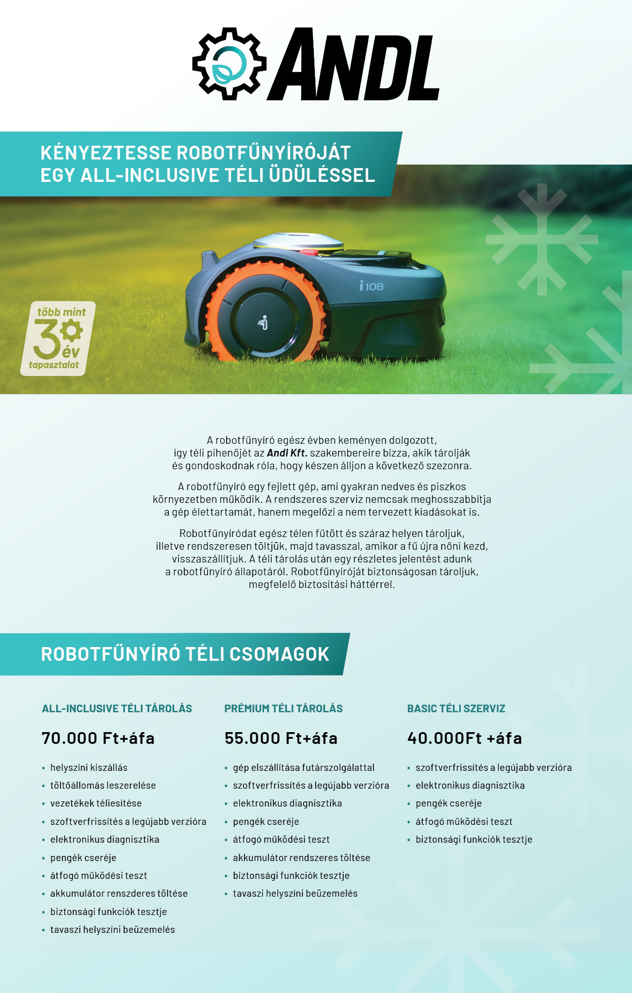 A robotfűnyíró téli tárolása kulcsfontosságú a hosszú élettartam és a hatékony működés szempontjából. Tudj meg mindent a biztonságos és egyszerű téli karbantartásról!