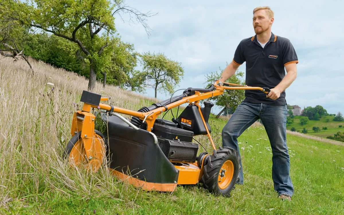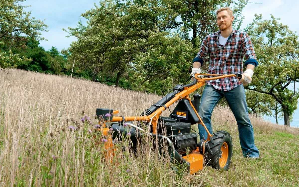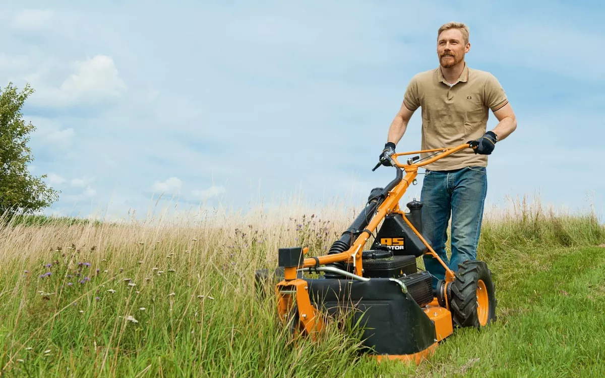 Az optimális motorvédelmet a hármas főtengelycsapágy biztosítja a kés csúszó tárcsájával kombinálva. A motor tiszta, pormentes levegőjét a beépített, emelt sznorkel szűrő biztosítja. A kétütemű motorra jellemző nagy sebesség és nagy nyomaték megfelelő teljesítményt nyújt még magasabb fűben is. A háromszoros főtengely csapágyazás a késen lévő csúszó tárcsával együtt biztosítja a motor védelmét idegen testekkel való ütközés esetén. A megfelelő hajtást a levegős hajtókerekek biztosítják 2,2, vagy 4 km/h-val. A 3 kerekes koncepciónak köszönhetően az AS 28 2T ES különösen mozgékony. A forgó első kerék rögzíthető a lejtőn történő nyíráshoz. Így megakadályozható a gép oldalirányú „lefordulása”. A kezelőkar magassága szerszám nélkül beállítható. A hátsó kerékfék rögzítőfékként is használható.