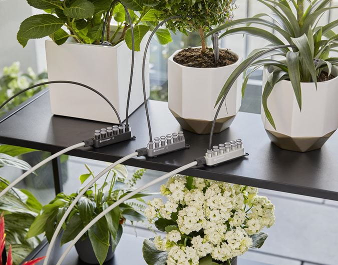 A Gardena automata öntözőkanna akár 36 növény öntözésére képes, csupán áramra van szükséged. A készlet tartalma a bővíthető, 10,5 l-es víztartály, mely 80%-ban újrahasznosított anyagból készült és akár öntözőszivattyúhoz is csatlakoztatható. Ideális választás pl. nyaralás alatt vagy egyszerűen a kényelmesebb öntözés érdekében. Egy beépített időkapcsolóval rendelkező transzformátor naponta 1 percre aktiválja a készüléket. A leadott vízmennyiség kimenetenként különbözik, így a növények vízigényeihez mérten lehet alakítani (15 ml/perc, 30 ml/perc, 60 ml/perc). Szükség esetén akár 3 cseppelosztót is elhelyezhetsz egy cserépben. Kül- és beltéri használatra is alkalmas.
