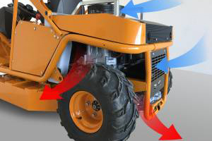 A motor és a hajtás elegendő mennyiségű friss hűtőlevegővel rendelkezik a külön bevezető és elszívó csövek miatt. Amíg a motor felülről szívja be a hűtőlevegőt, és oldalra üríti, a hidrosztatikus hajtás hátulról szívja fel a hűtőlevegőt, és lefelé továbbítja. A két különálló szellőzőkör megakadályozza, hogy a két elem egymásnak adja át a forró levegőt. Ez a rendszer az alkatrészek hosszabb élettartamát és megbízható védelmet nyújt a túlmelegedés ellen, még magas kültéri hőmérsékleten és nehéz felhasználás esetén is.