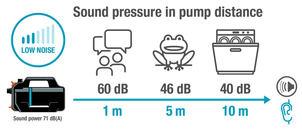 - Automata működés: Be-/kikapcsoló funkció, Safe-Pump és szárazonfutás elleni védelem a biztonságos üzemeltetéshez.