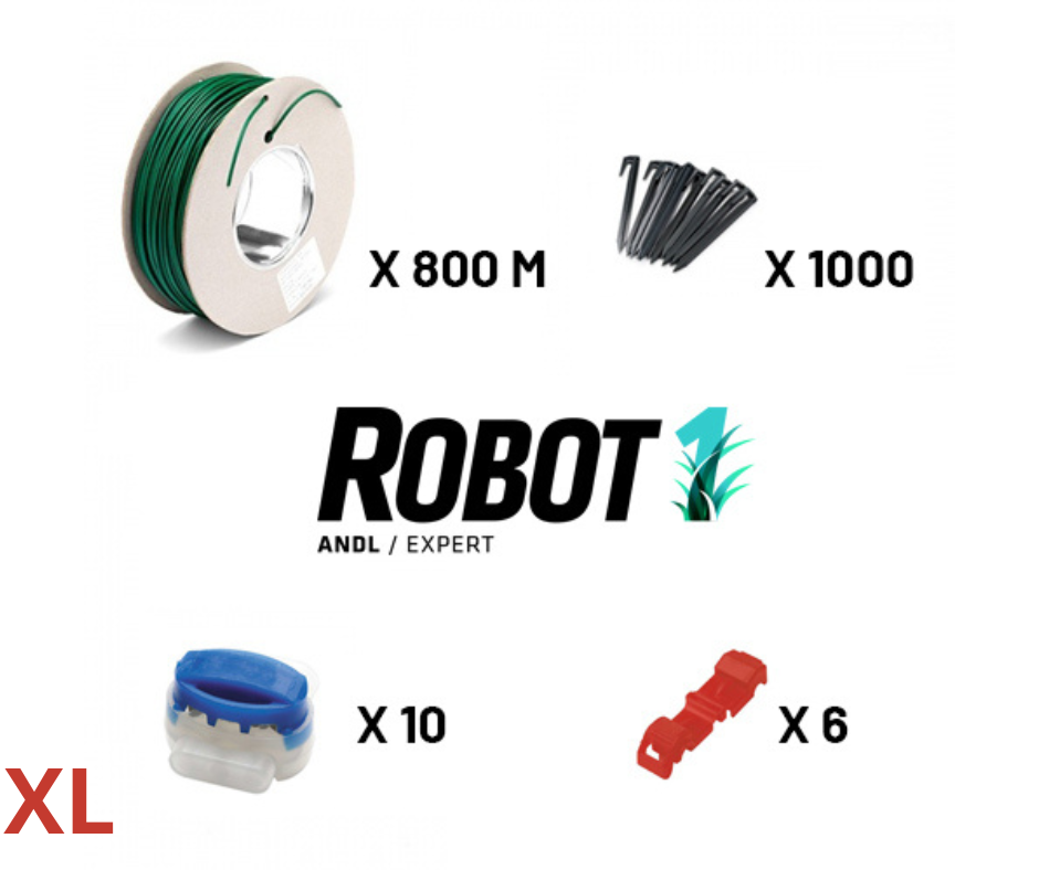 A ROBOT1 készletben minden megtalálható, ami szükséges egy robotfűnyíró telepítéséhez. Fektesse le a vezetéket, rögzítse a műanyag tüskék segítségével, a dokkoló csatlakozókat kösse a töltőállomás saruira, és használja a vízmentes zsírcsatlakozót a vezetőszál bekötésére vagy toldásra. Ezeken kívül már csak egy gumikalapács és egy kombináltfogó szükséges.
