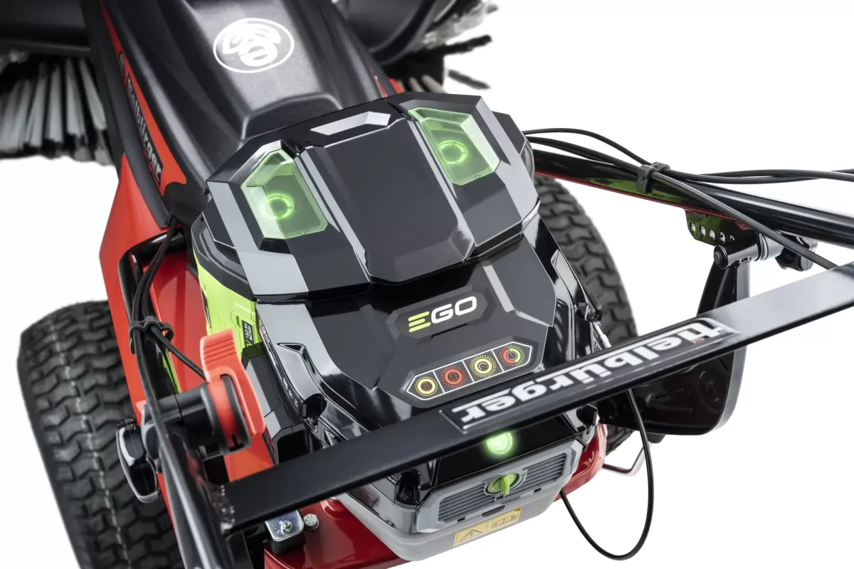 Ehhez az EGO cég akkumulátorrendszerét használjuk, amely több mint 1 300 wattórányi energiát tárol a hajtáshoz. Az akkumulátorrendszer másik nagy előnye, hogy a sövényvágótól a nagy fűnyíró traktorig sokféle eszközzel használható. Minden EGO akkumulátor kompatibilis az IPX5-tanúsítvánnyal rendelkező elektromotorral. Mindegy, hogy egy vagy két akkumulátor kerül használatba – két 12 Ah-s akkuval akár 135 perces üzemidő is elérhető. A cserélhető akkumulátorrendszernek köszönhetően a működési idő tetszőlegesen meghosszabbítható: ha az egyik akku lemerül, egyszerűen tegyünk be egy feltöltöttet.
