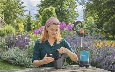 A GARDENA akkumulátoros hordóürítő szivattyú ideális öntözési és vízelvezetési feladatokra a kertben vagy a ház körül. Egy hordó vagy tartály segítségével összegyűjtött esővizet a szivattyúval egyszerűen hasznosíthatod a kert öntözésére. Nem kell többé nehéz öntözőkannákat cipelni. Vezérlőszeleppel állítható a teljesítmény, egy töltéssel akár 65 percig üzemel. Az akkumulátordoboz csatlakoztatható a szivattyúhoz, így lesz könnyű és kompakt, egyszerűen szállítható és tárolható. Az új időzítő funkcióval 5, 10 vagy 15 perc múlva megbízhatóan leáll. A talpba beépített finomszűrő véd a szennyeződésektől, tisztításhoz pedig könnyen kivehető.