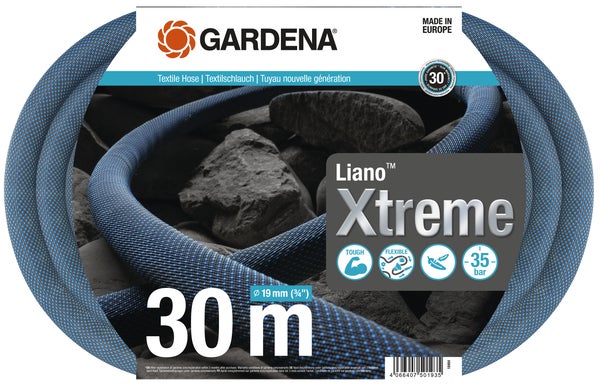 A GARDENA Liano™ Xtreme egy 30 méter hosszú, 19 mm (3/4") átmérőjű, rendkívül strapabíró textiltömlő, amelyet kifejezetten nagy vízmennyiség gyors szállítására terveztek.