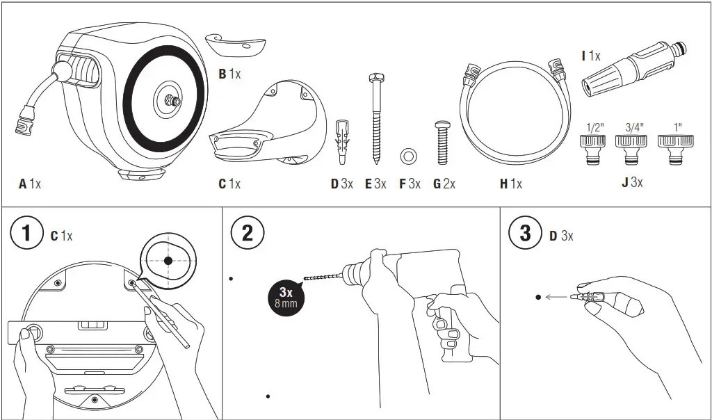 A Gardena RollUp fali tömlődob készlet segíti a kert rendben tartását, megakadályozza, hogy a tekergő tömlőben bárki elessen. A masszív fali konzol segítségével több mint 180o-ban elforgatható, egy rugalmas összekötő tömlővel egyszerűen csatlakoztatható a vízcsaphoz. A tömlő használata közben könnyen kihúzható, rövid szakaszonként megáll. Használat után egy apró húzó mozdulattal automatikusan feltekeredik a beépített RollControl technológiával ellátott acélrugónak köszönhetően.