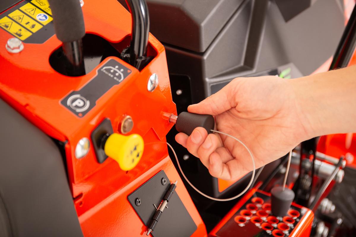 - Alacsony ágak alatt vagy legfeljebb 20°-os lejtőn történő munkavégzés esetén a platform lehajtva használható, így az ARROW E gyalogkíséretű fűnyíróként is működtethető.
