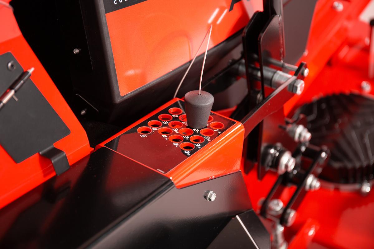 - A vágásmagasság fokozatmentesen állítható lábpedál és kézi emelő kombinációjával, ami precíz és kényelmes beállítást tesz lehetővé.