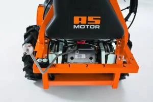 A 480 cm3-es motor maximálisan 16 lóerő teljesítményre képes. Megfelelő teljesítmény még nehéz körülmények között is. A hajtása egy 5 fokozatú, plussz hátrameneti fokozatú váltóval történik. Az 5 sebességi fokozatban 1,2 km/h és 4 km/h közti sebesség beállítása lehetséges. Hátramenetben az AS 901 SM 1,7 km/h sebességgel halad. Ezenkívül a hátsó differenciálmű állandóan reteszelt, amely biztosítja a jobb kezelhetőséget lejtőn. Alacsony súlypont, tökéletesen kiegyensúlyozott súlyelosztás. Az AS 901 SM könnyen kezelhető mindössze négy vezérlőkarral. Az optimális biztonságot az automatikus kézifék biztosítja. Ez automatikusan bekapcsol, amikor a hajtókar kiold. A gépvezérlés a szabadalmaztatott kormány- és fékkapcsolón keresztül történik. Ha a hajtás be van kapcsolva, a differenciálzár bekapcsol. Ezt kerekenként lehet oldani úgy, hogy egyszerűen megnyomja a bal, vagy jobb oldali kart. Ez megnyitja a differenciálzárat az adott keréknél, így a gép könnyedén irányítható. Ez lehetővé teszi a fűnyíró kényelmes, nagyon könnyű és mindenekelőtt biztonságos manőverezését nehéz terepen és lejtőkön milliméter pontossággal.