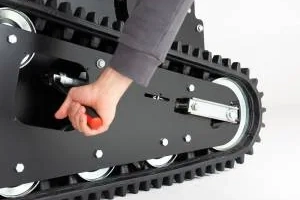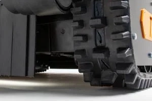 A lánctalpas felépítés – az egyenletes súlyelosztásnak, a nagy felfekvő felületnek és az alacsony súlypontnak köszönhetően – minden menethelyzetben kiváló tapadást biztosít: emelkedőn, lejtőn és oldalirányú lejtőkön egyaránt. Az akár 56 fokos oldalirányú lejtőtűrés stabil és jól kontrollálható munkavégzést tesz lehetővé. A talajjal kizárólag a lánctalpak érintkeznek, ami csökkenti az elakadás veszélyét és kíméli a gyepfelületet. A mindössze 0,14 kg/cm²-es alacsony talajnyomás tovább hangsúlyozza a talajkímélő kialakítást.